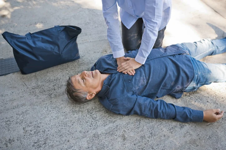 Performing CPR and using an Automated External Defibrillator to respond to cardiac emergencies.